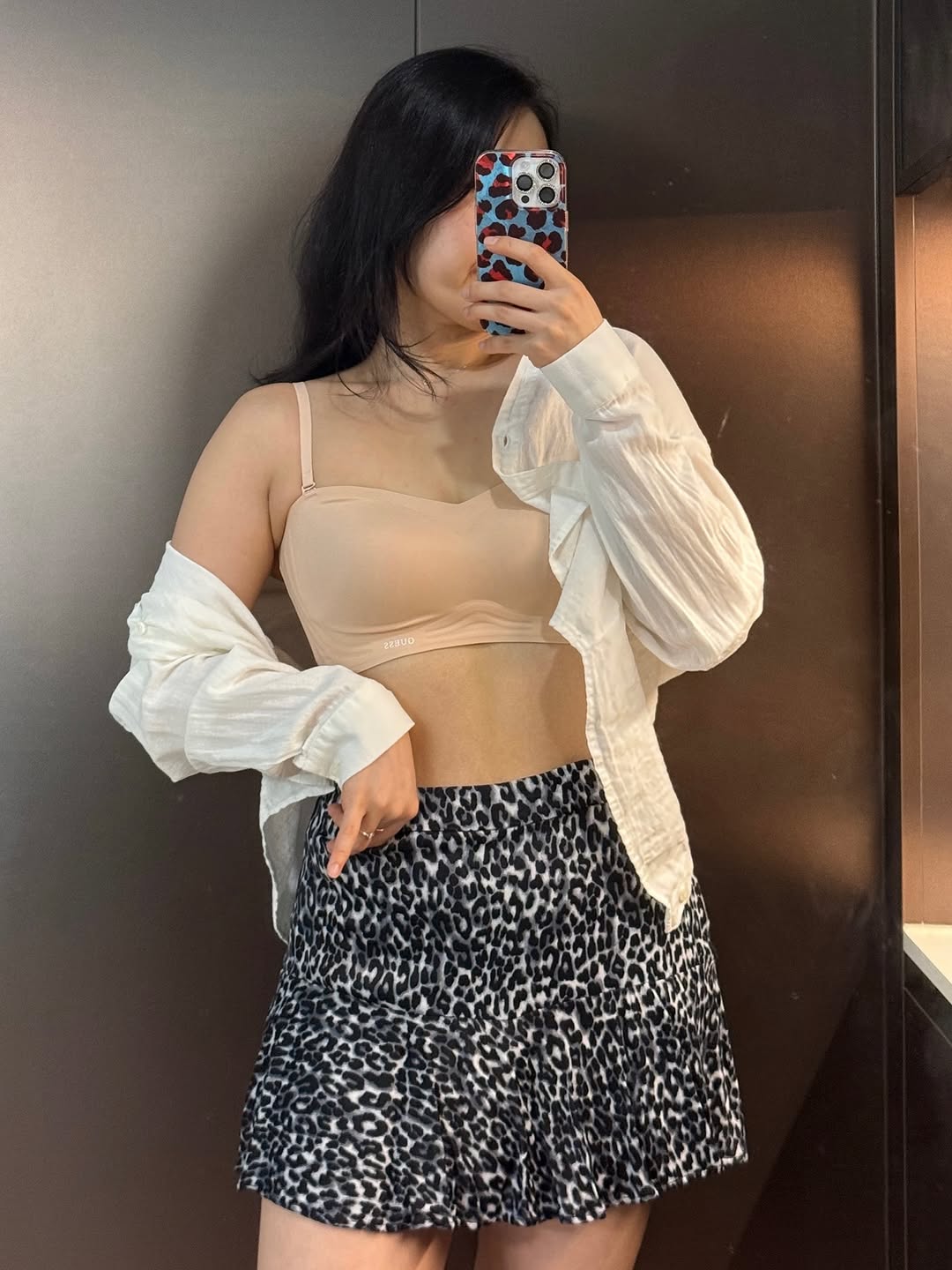 그리고 레오파드 패턴도 처음 도전해봤는데, 생각보다 너무 매력적이었어요! 🐆 올블랙 코디에 살짝 보이는 게스 레오파드 언더웨어는 은근한 섹시함을 더해주는 포인트가 되어주더라구요. 😉